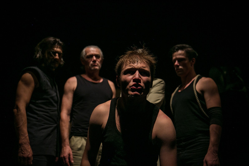 M.E.: Sok helyzetben segített. A fizikai terhelés vagy akár a fájdalomérzet, a feszítés és lazítás hatására a belső állapotváltozások is valahogy könnyebben megszületnek. Egyébként ki kellett kísérleteznünk a megfelelő méretű követ, ami pont annyira húz hátra, amennyire szükséges. A verekedős résznél például nagyon kell vigyázni, mert a kő már párszor ráesett a fejemre. De Nagypál Gábor nagyon vigyáz mindenkire, felsegített a próbákon, és megtanított arra, hogy mennyire kell figyelnünk egymásra. Nem vihet el az indulat.